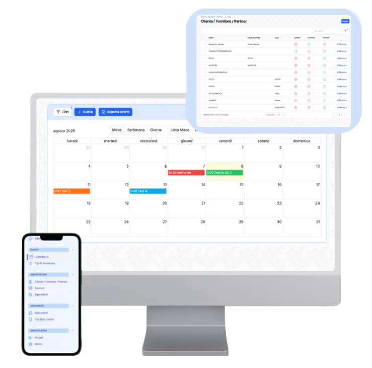 Che si tratti di scadenze di routine o di appuntamenti speciali, avrai tutto sotto controllo in un unico ambiente semplice e intuitivo.